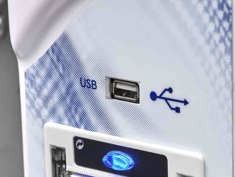 Dokumentation über integrierten Datendrucker und USB-Anschluss mit USB-Stick und Software (Windows) zur Speicherung und Auswertung der Sterilisationszyklen.
