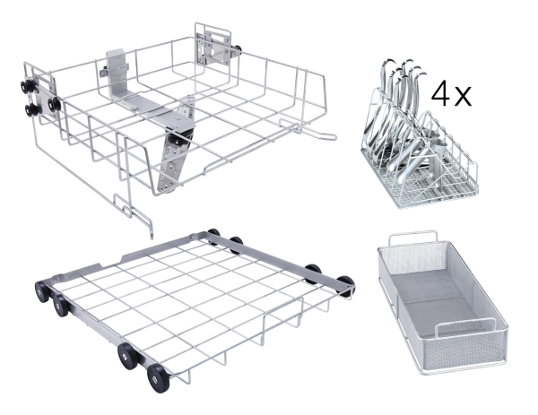 Korbset zur hygienischen und einfachen Aufbereitung von gynäkologischen Instrumenten.