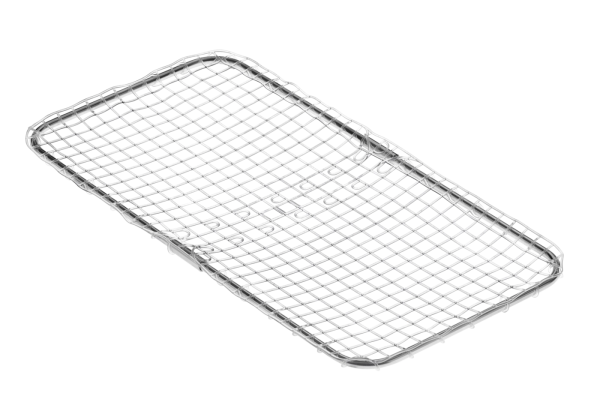 - Edelstahlrahmen mit Kunststoffnetz bespannt, Größe 445 x 215 mm