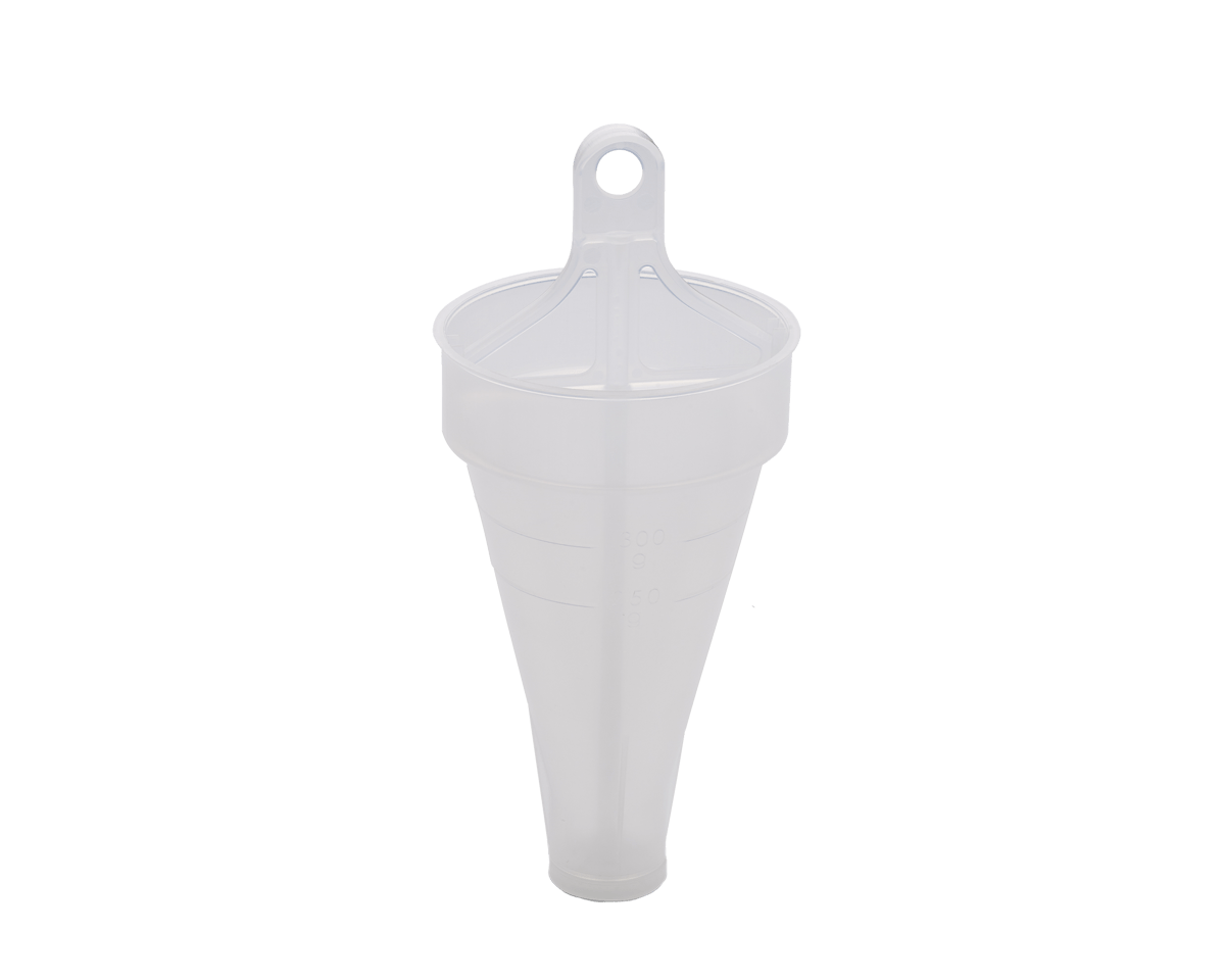 Kunststofftrichter zur Salznachfüllung im Thermodesinfektor (RDG). Der Trichter verfügt über einen Verschluss an der Unterseite. Das Salz wird einfach vorab in die breite Öffnung des Trichters geschüttet. Eine Markierung hilft beim Abmessen der gewünschten Menge. Anschließend wird der Trichter auf die Öffnung der Salzkammer gesetzt. Beim Aufsetzen des Trichters öffnet sich der Verschluss, so dass das Salz in die Kammer rieseln kann.